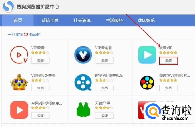 在搜索结果中任意找一款vip观看插件并安装。(这里是按照星级评分随意选的)
