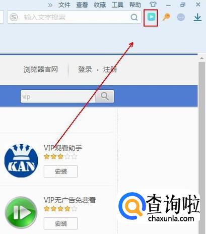 在搜狗浏览器的插件中心网页的右上角搜索栏中输入“vip”