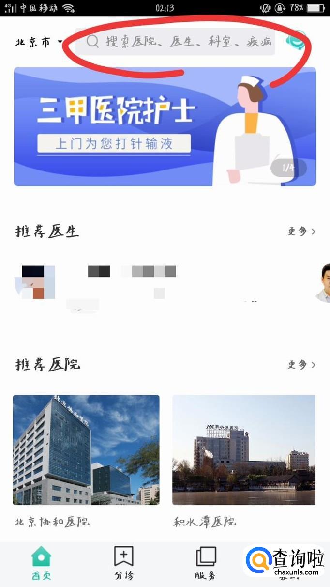 也可以在屏幕最上方的搜索栏中直接输入医院,医生或者疾病名称来进行查询。