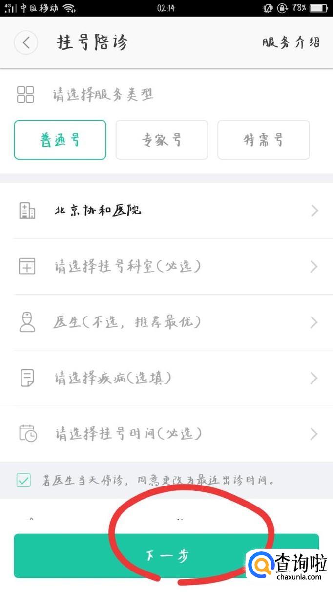 输入想要挂号的科室及医生等相关信息,点击最下方“下一步”,完成支付挂号费即可成功挂号。