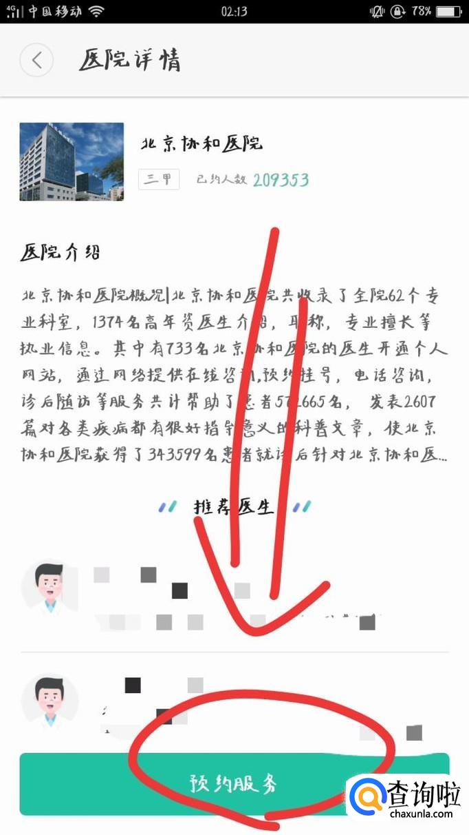 例如选择北京协和医院,进入医院详细介绍界面,点击下方“预约服务”。