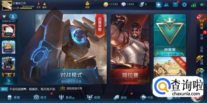 首先,我们进入王者荣耀主界面。在主界面上我们选择对战模式。