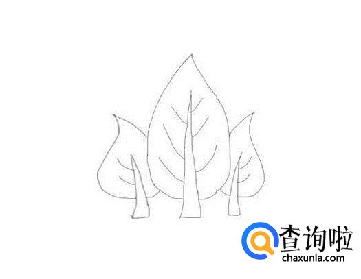 再在这个树木的右侧再画出一个小的树木,如图所示: