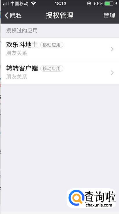 点击授权管理我们就能够看到微信授权过的应用或者网站了。