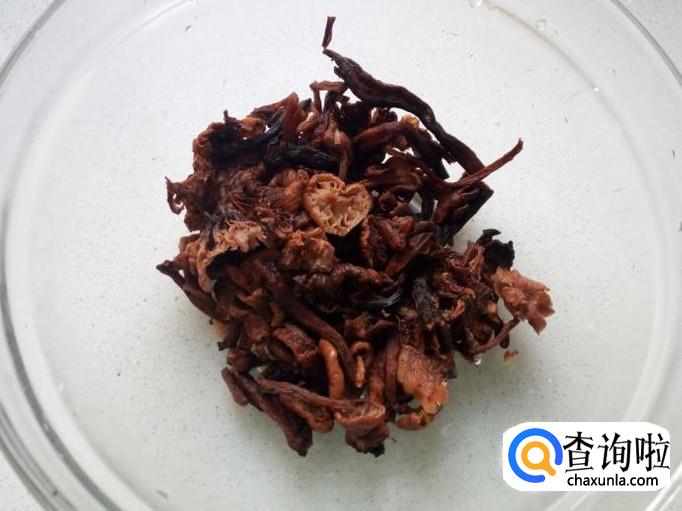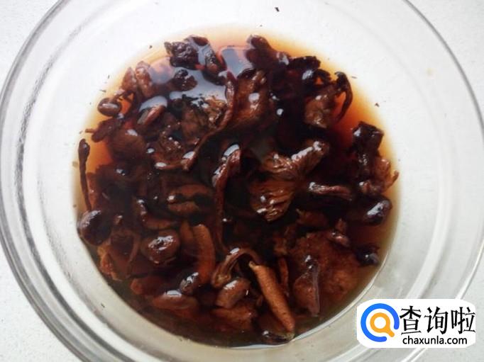 把泡发好的榛蘑,去根,清理干净,再用清水清洗干净,攥干水分,备用。