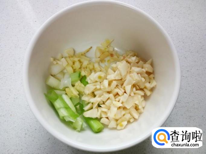 葱,姜,蒜,切成末,蒜要多一些,我用了五瓣蒜。