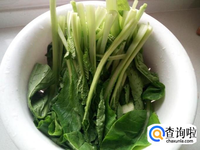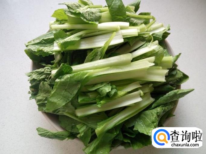 小白菜去根,用水洗净,控干水分,切成10公分左右长的段,备用。