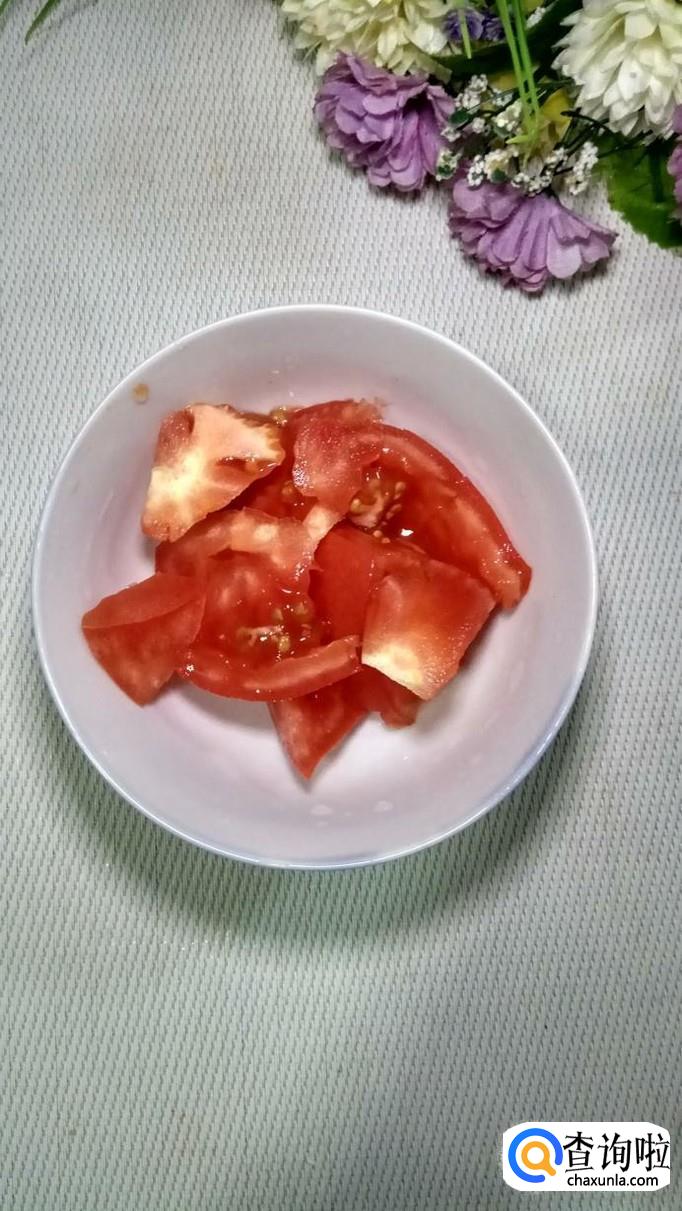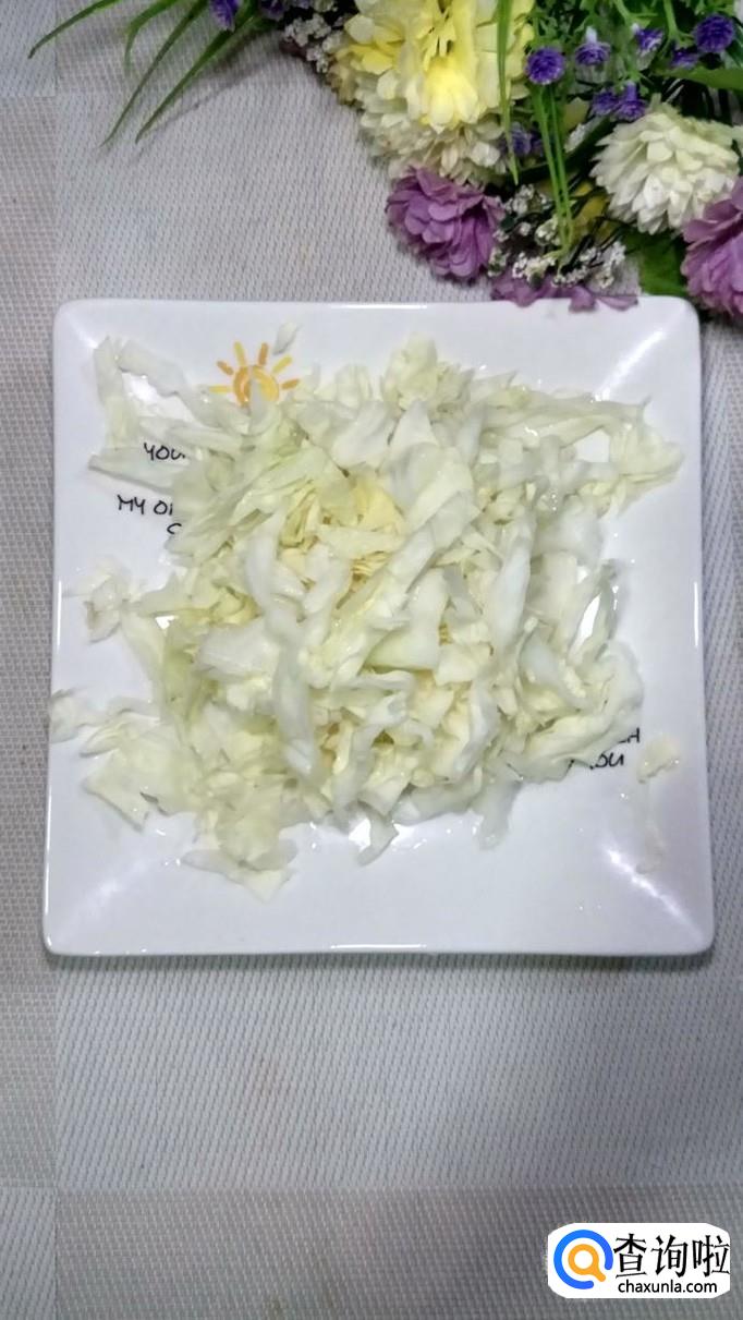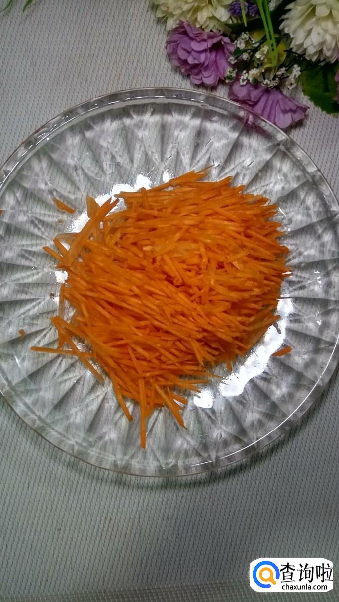 准备适量包菜,洗净后切成丝,准备适量胡萝卜,洗净去皮,擦成丝,再准备适量西红柿,洗净后切成块,放入盘中备用。