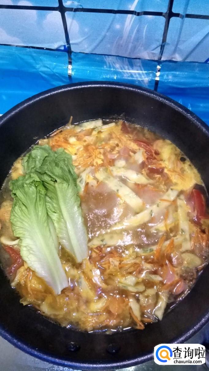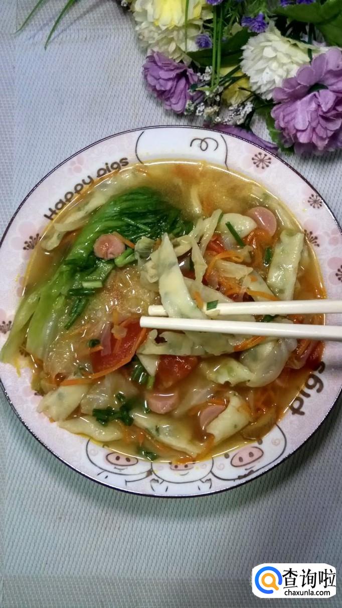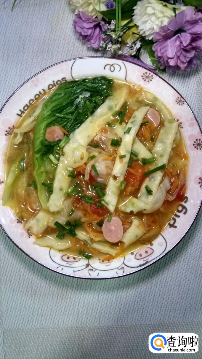 面粉适量,鸡蛋适量,芹菜适量,包菜适量,胡萝卜适量,火腿肠适量,西红柿适量,蒜适量,生菜适量,盐适量,鸡精适量,五香粉适量,生抽适量,陈醋适量,小葱适量。