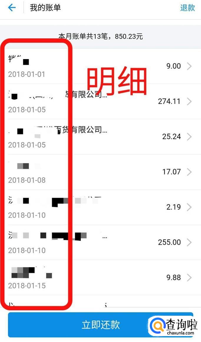 支付宝蚂蚁花呗怎么查看消费账单、消费详情明细