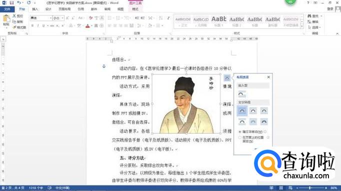 图片在word中默认为嵌入型,要想变成四周围绕型,第一种方法是点击图片,边上就有小图标,可以直接选择需要哪种类型。