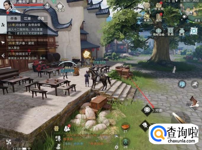 这样就会传送来到江南这个场景,之后找到NPC小二后点击跟他进行对话。