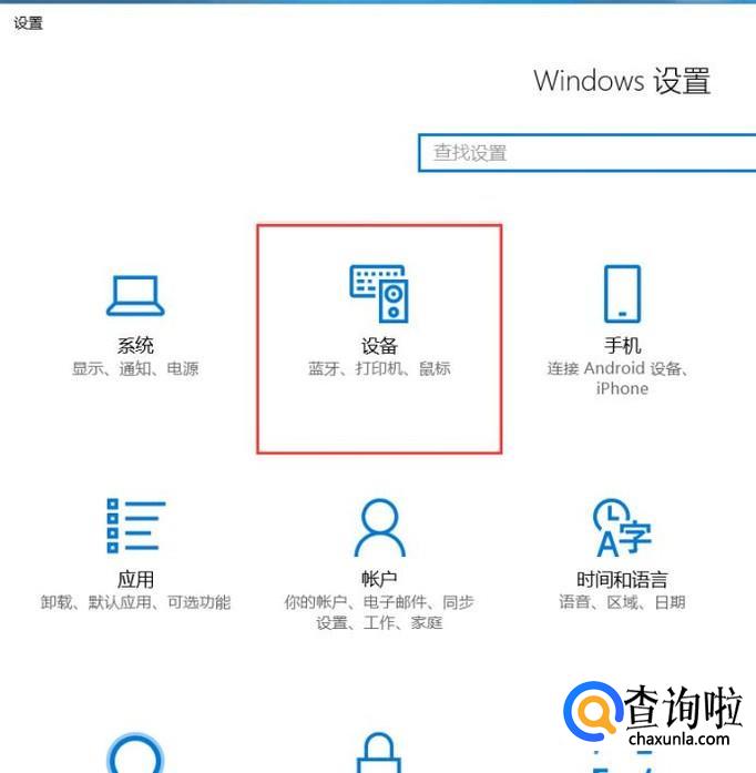 接下来,在打开的页面中,点击选择“设备”选项,进入系统设备设置页面。