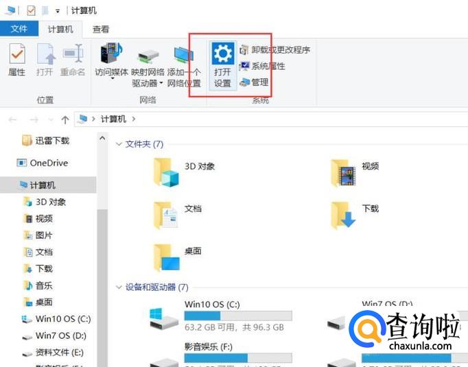 首先,打开Win10系统中的计算机页面,点击“设置”按钮,进入系统设置页面。