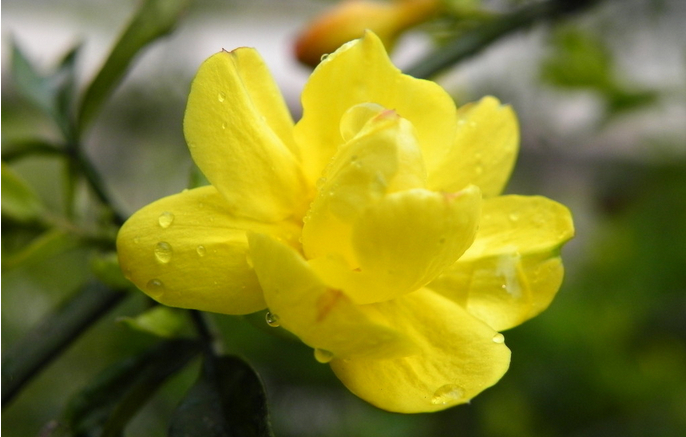 迎春花这个名字就是能感觉到是春天开的花,迎春花花朵比较小,花色淡粉色,在花瓣的简短有红晕,花朵的尾部有花托鼓起,开花的时候有清香气味,花朵为金黄色,非常具有观赏性。
