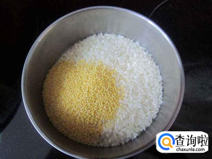 将大米和小米分别淘洗干净,我是按照1:1的比例来加米的,这个没有特定,根据个人爱好添加。