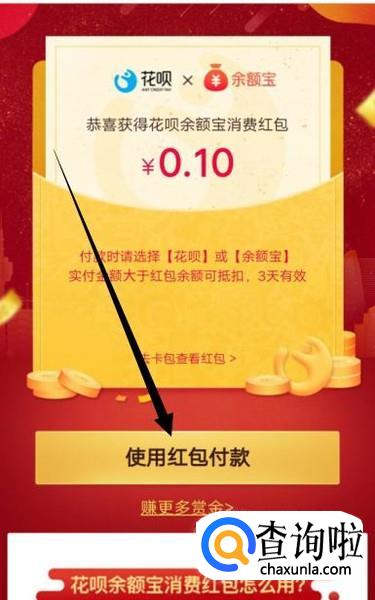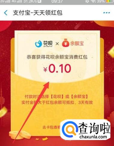 扫描成功之后,系统就会提示获得余额宝红包,如图所示。