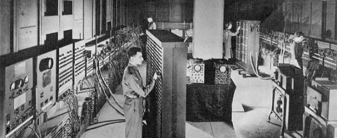 ENIAC,全称为Electronic Numerical Integrator And Computer,即电子数字积分计算机。ENIAC是继ABC(阿塔纳索夫-贝瑞计算机)之后的第二台电子计算机和第一台现代计算机。它是完全的电子计算机,能够重新编程,解决各种计算问题。它于1946年2月14日在美国宾夕法尼亚大学诞生。承担开发任务的人员由科学家约翰·冯·诺依曼和“莫尔小组”的工程师埃克特、莫克利、戈尔斯坦以及华人科学家朱传榘组成。总工程师埃克特在当时年仅25岁。