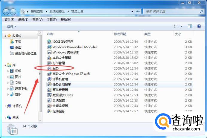 然后在“管理工具”文件夹中,双击打开“服务”。