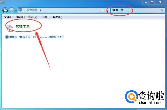 然后在输入框中输入并搜索“管理工具”,然后再点击下方的管理工具连接。