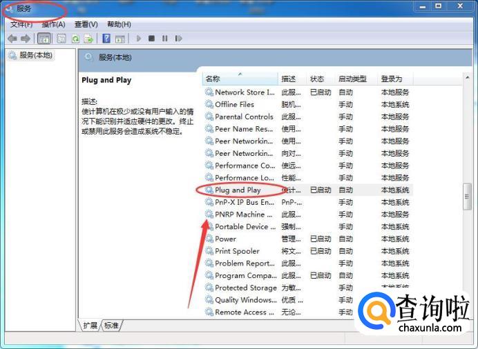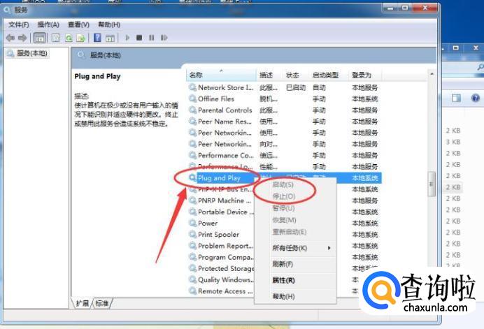 然后再选中“plug and play”,先把它停止,然后再启动。