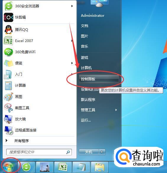 点击电脑左下角的开始图标,然后在弹出的上拉菜单中,点击“控制面板”。