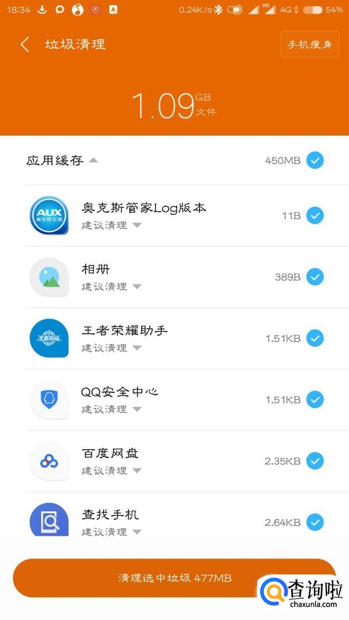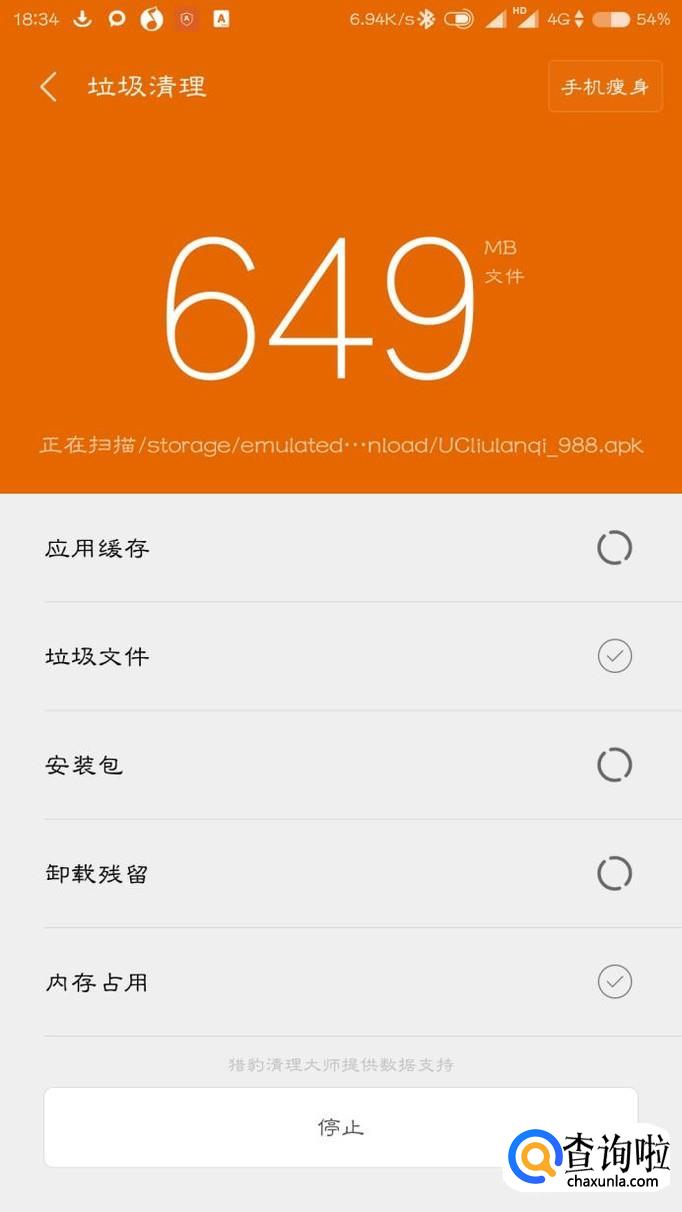 等待扫描结束之后清理垃圾文件,并卸载不必要的应用。