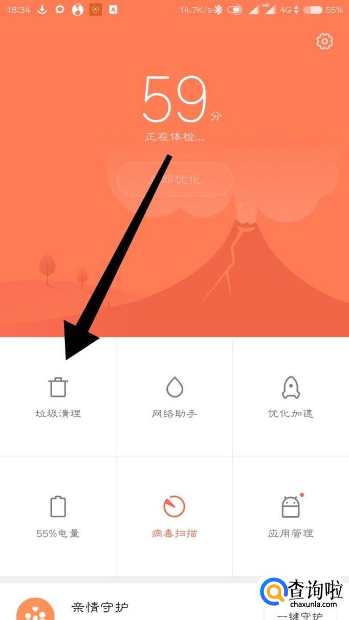 如果还是卡顿的话,打开我们的手机管家,选择垃圾清理。