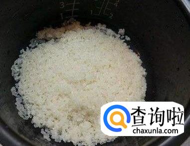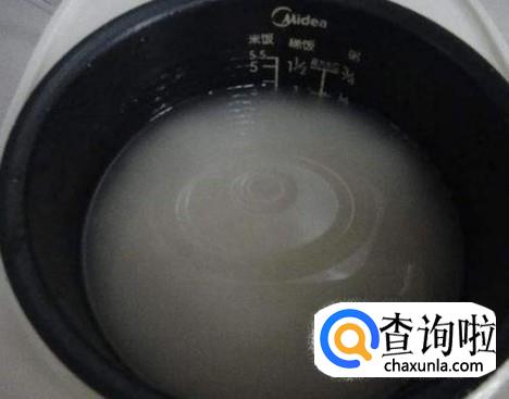 在锅中放入适量的清水,一般按一比一的比例就可以,电饭锅中有刻度,记下米和水的刻度,以后再蒸米饭就方便了。
