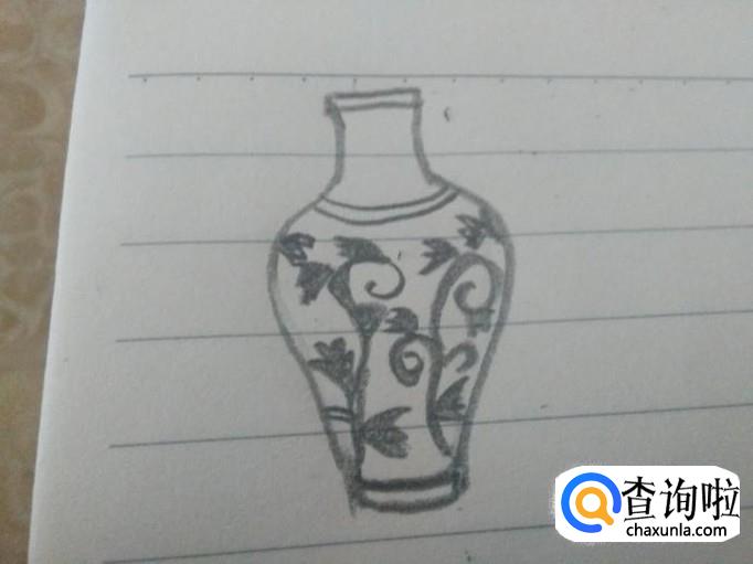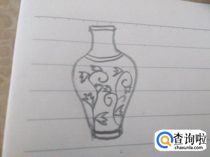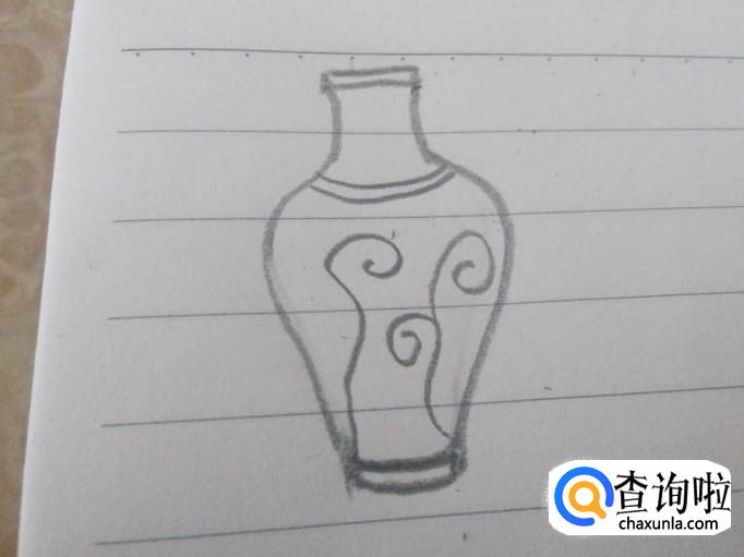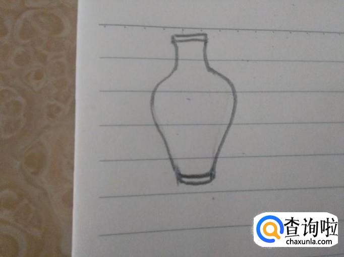 先勾勒出一个花瓶的的外形,开口和底端画双线。