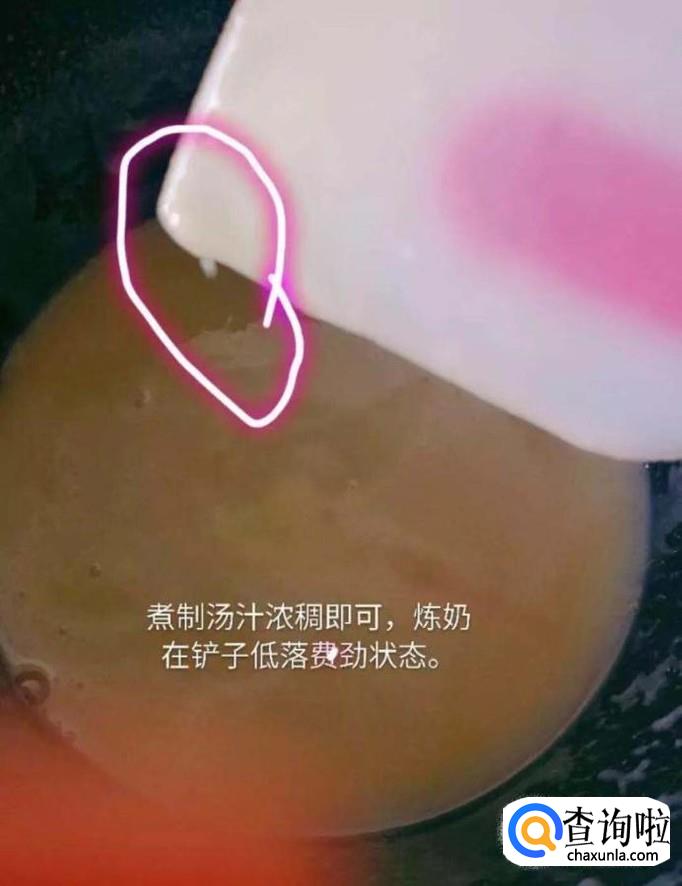 等到锅中的牛奶熬制成汤汁浓稠状就可以了,如下图所示。