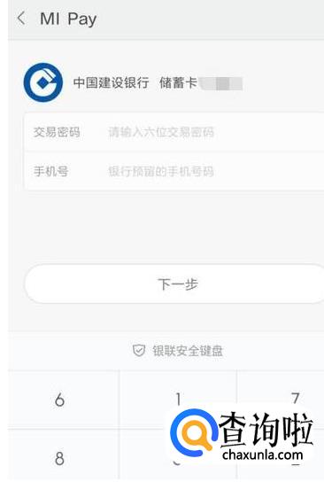 银行号号码读取完毕之后,我们即可点击“下一步按钮,点击之后就需要与银行进行在线联络。紧跟着,需要你输入银行卡的支付密码和预留的手机号码,这样我们才可以通过银行的短信提示来校验手机和银行卡。