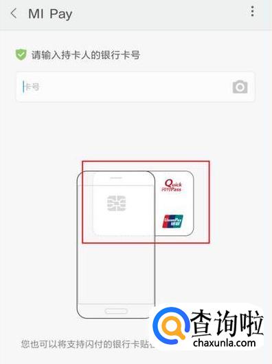 接着点击页面中出现的添加MI Pay银行卡“字样按钮,点击之后即可进入功能设置页面