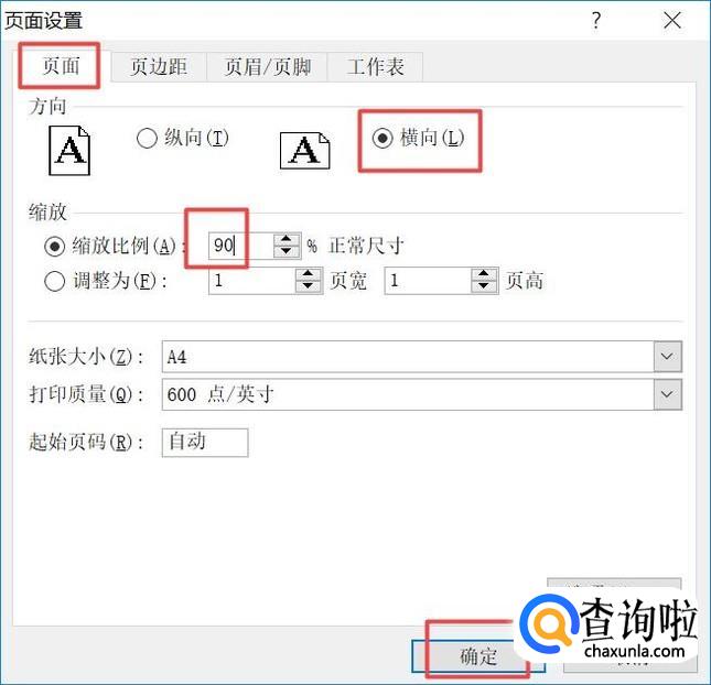 弹出的界面,我们可以将页面中的内容进行更改,我们改为横向,缩放比例改为90,之后我们就可以点击确定了,这样我们就更改好了。