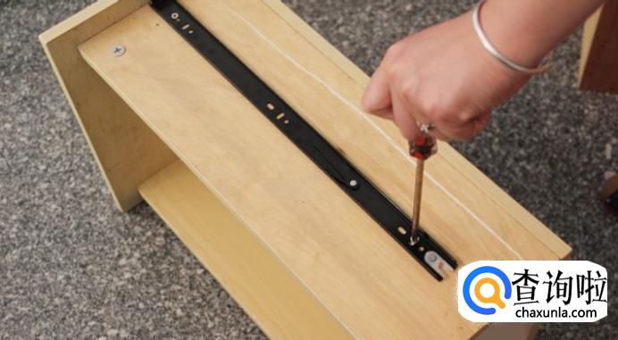 接着是内外轨的安装了,这时候内轨和已经安装固定好的中轨和外轨保持相同的位置,在测量好的位置上用螺丝将内轨固定在抽屉柜体。