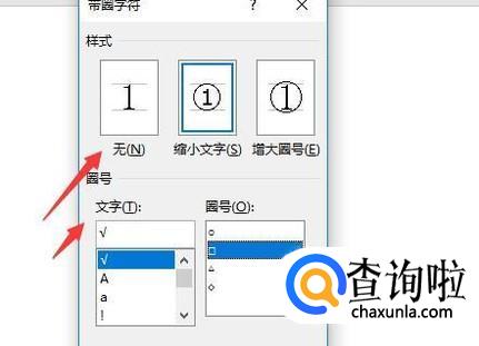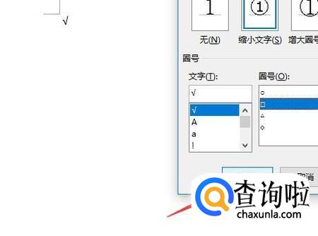 对文字进行设置,选择好文字的样式和所带圈的形状,如图所示选择方形即可,这样就会出现方框中带有√了。