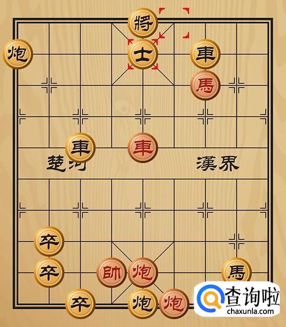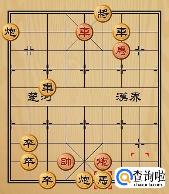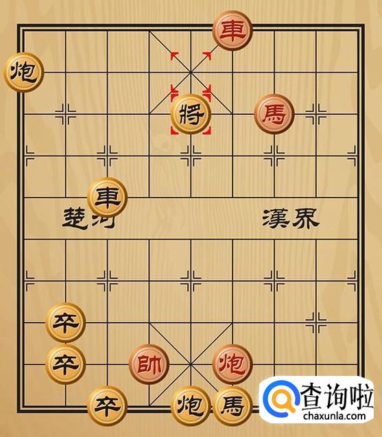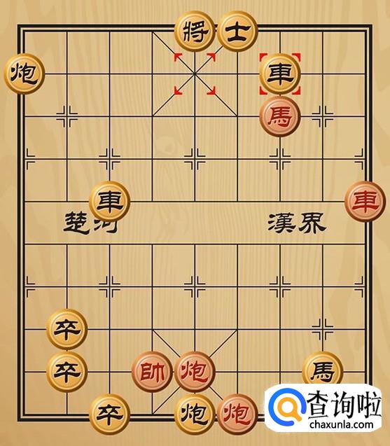 红方车五进一吃掉黑方的炮将军,黑方无路可走,红方胜利。