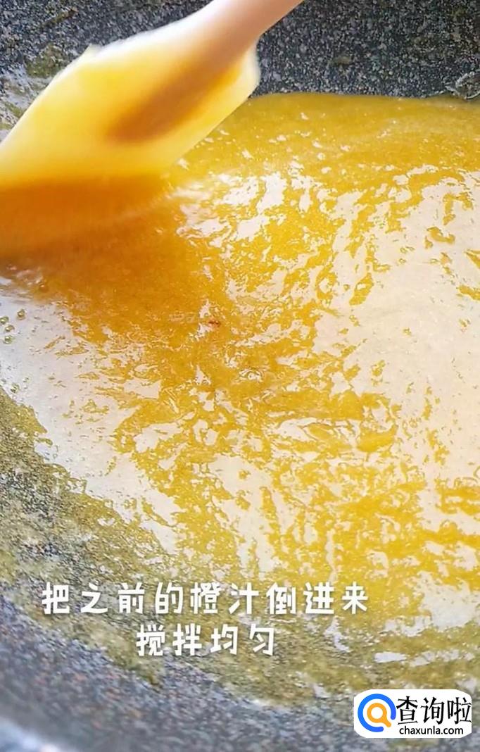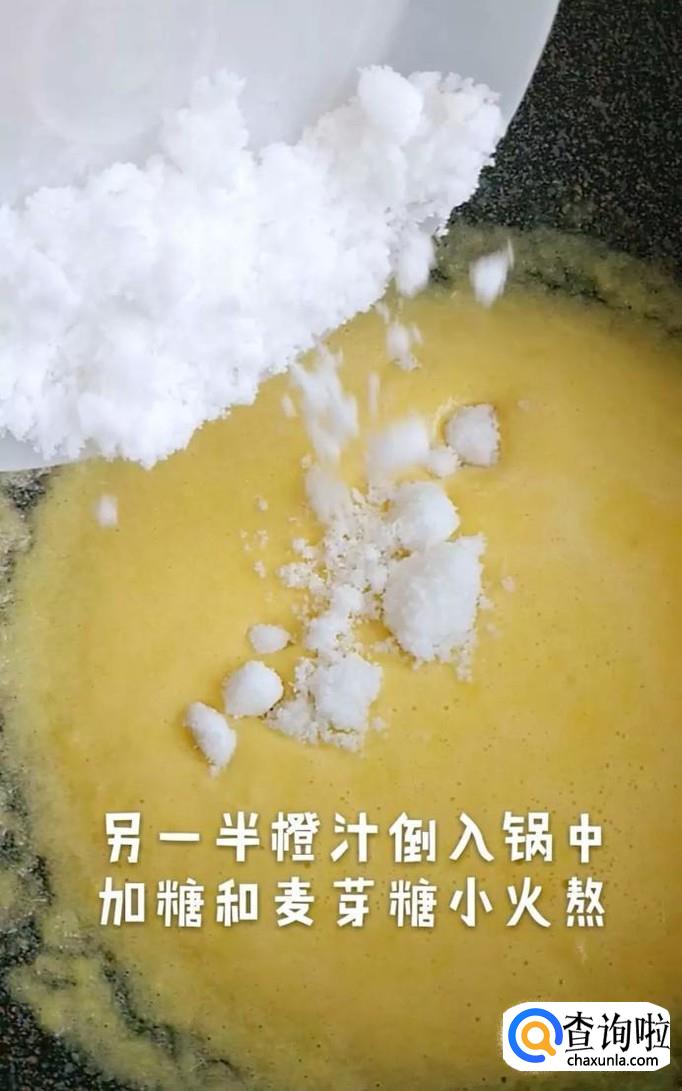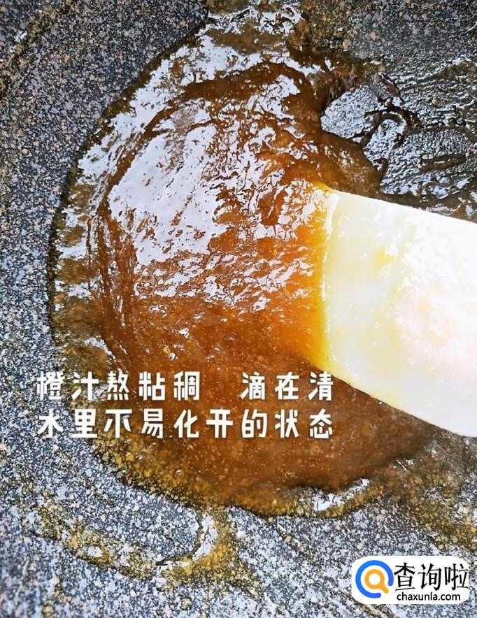 橙汁熬到取一部分滴在清水中不易化开的状态就可以了。