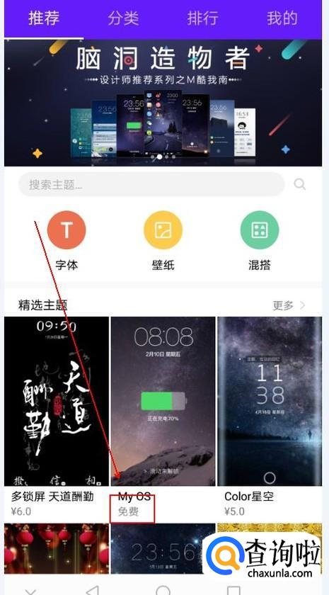 在“主题”页面中找到并点击自己喜欢且下方标有“免费”字样的主题。