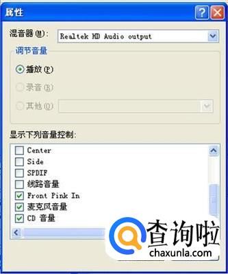在属性界面下面的列表里找到与麦克风有关的选项,前面打钩,点“确定”。
