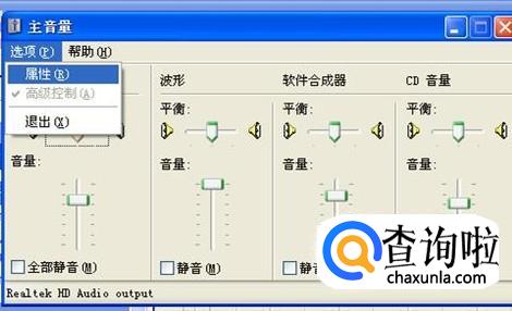 在弹出的对话框里先看看有没有有关麦克风的选项,如果没有,就点击左上角的“选项”,在出现的小菜单里选“属性”。