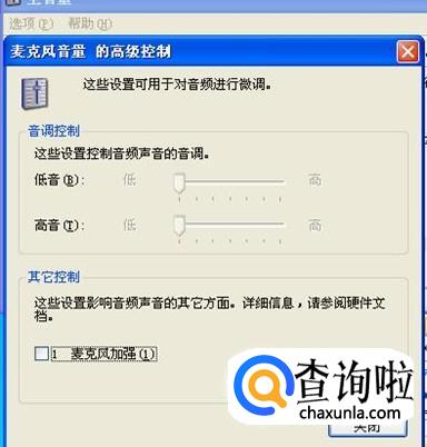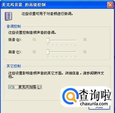 在这个界面就会看到“麦克风加强”前是打钩的,把它去掉,点下面的“关闭”就可以了。