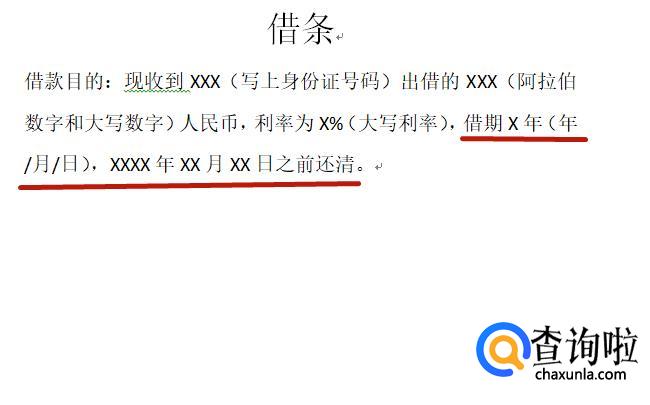 借期应该写明并大写,还要写明归还日期也要大写,如图所示。