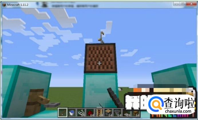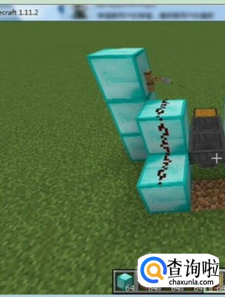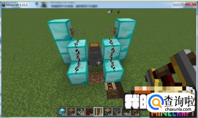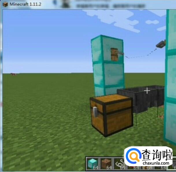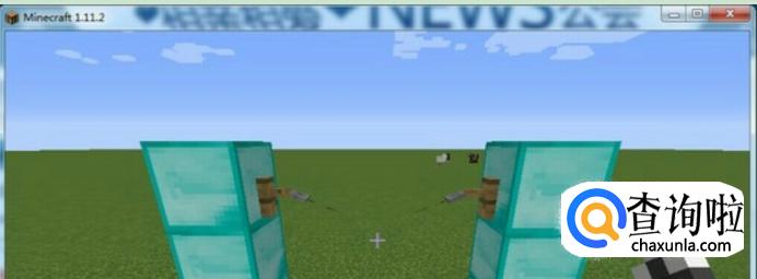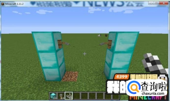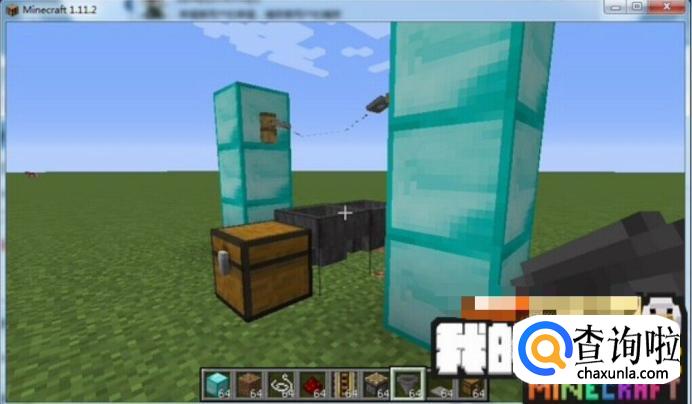 然后在三格高的位置放上一对绊线钩,并且拉上线。
