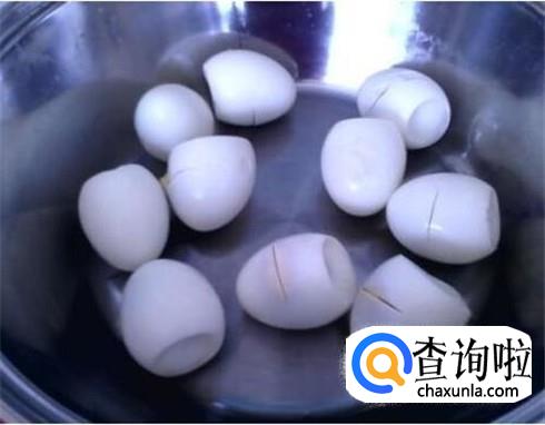 把煮熟的鸡蛋都剥皮,在鸡蛋上切一小刀,这样好入味。