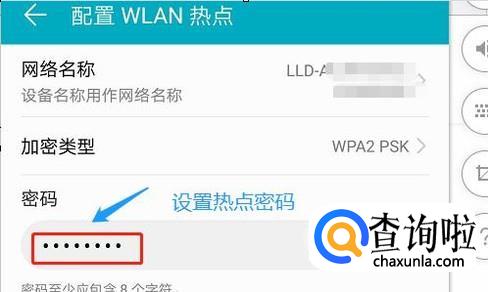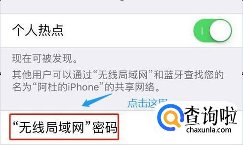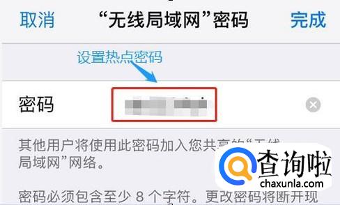 默认的热点一般是关闭的,我们手动将其打开,然后点击下方的“无线局域网密码”处给热点设置一个密码;
