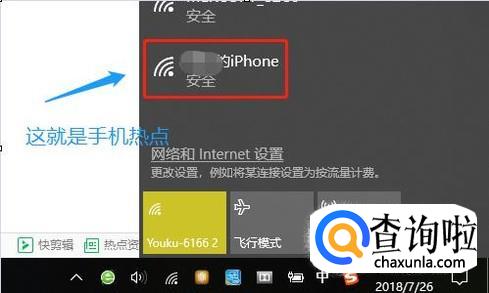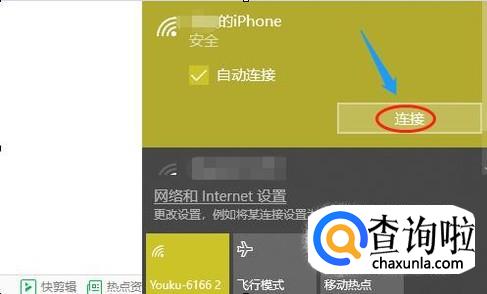 设置完成以后,电脑的右下角WiFi连接处就可以看到这个热点名称,一般后缀为XXX的iPhone,如图所示;点击连接然后输入我们在手机上设置的密码就可以上网了(确保手机的流量充足哦)