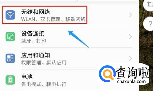 如果有小伙伴说,我用的是安卓手机能不能给电脑共享网络呢?当然也是可以的,下面小编以华为手机为例,依旧打开设置,然后找到“无线和网络”选项,如图;