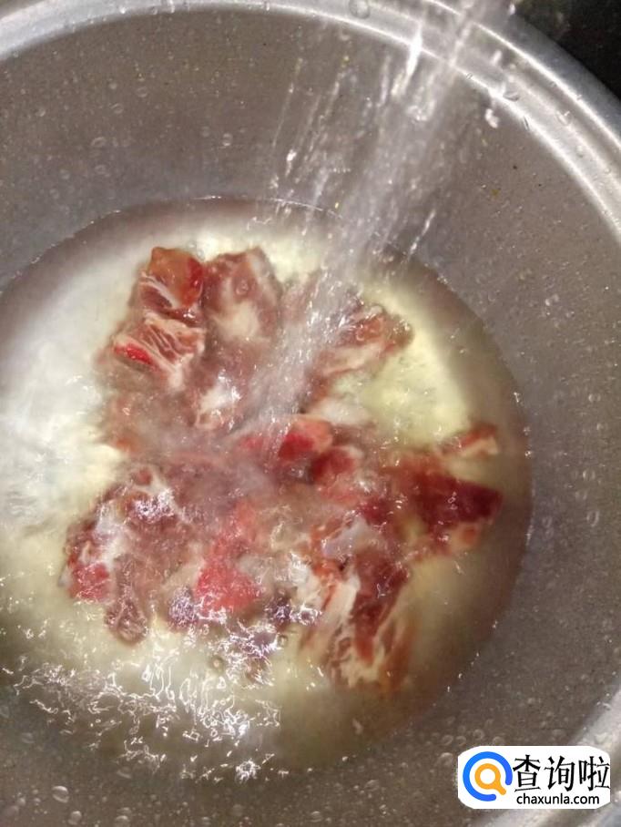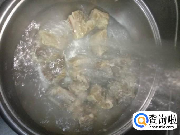 将排骨先冲洗干净,再放入锅里,加入适量的水,煮开;再将排骨捞出,用凉水冲洗干净;这样处理过的排骨用来煮汤会更清甜爽口;