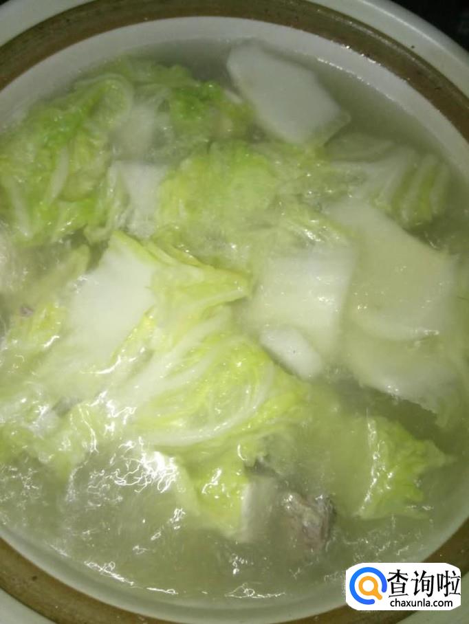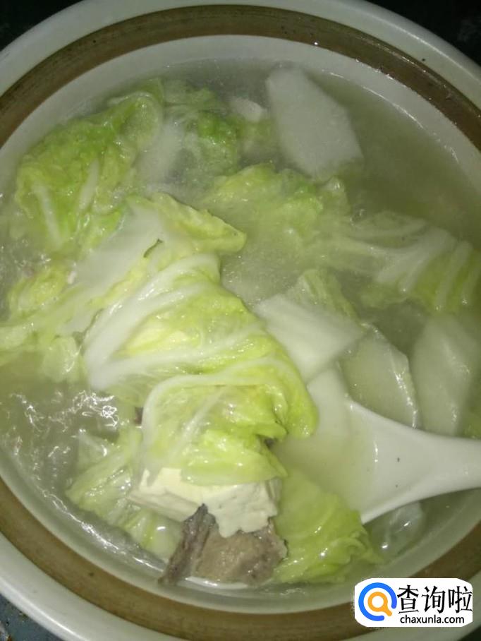 材料:娃娃菜 豆腐 排骨 盐 鸡精 姜